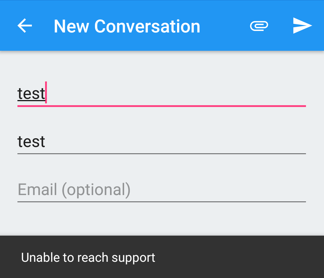 hs__could_not_reach_support_msgText shown on Snackbar when user is filing new issue and support is unreachable Unable to reach support