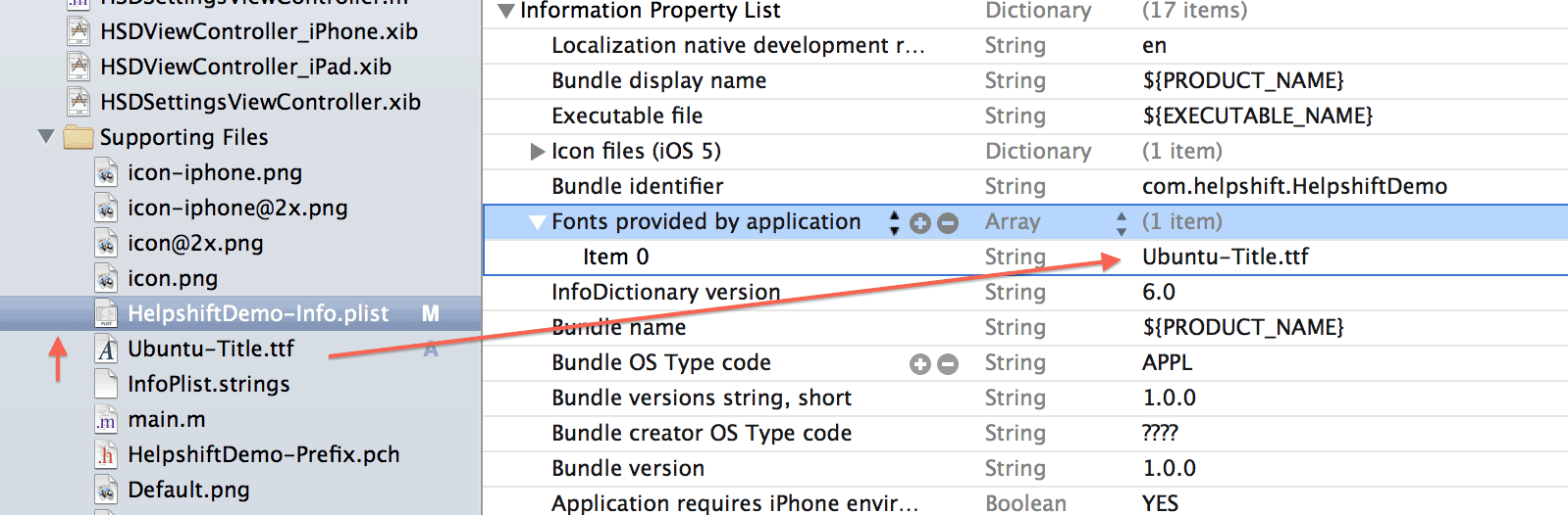 Step 3: Paste the font name into HelpshiftConfig.plist, wherever necesary