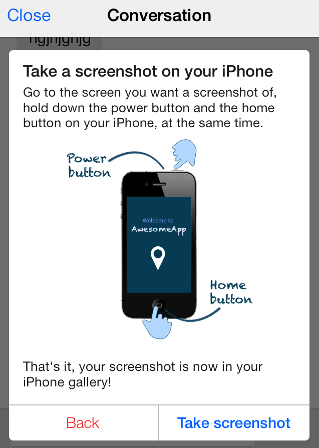 | Ok, Attach | Text for the button in the screenshot widget that takes the user to the iPhone/iPad gallery to select a screenshot ![]() |