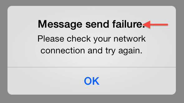 | Message send failure. | Title for alertview that shows when starting new conversation was not successful ![]() |