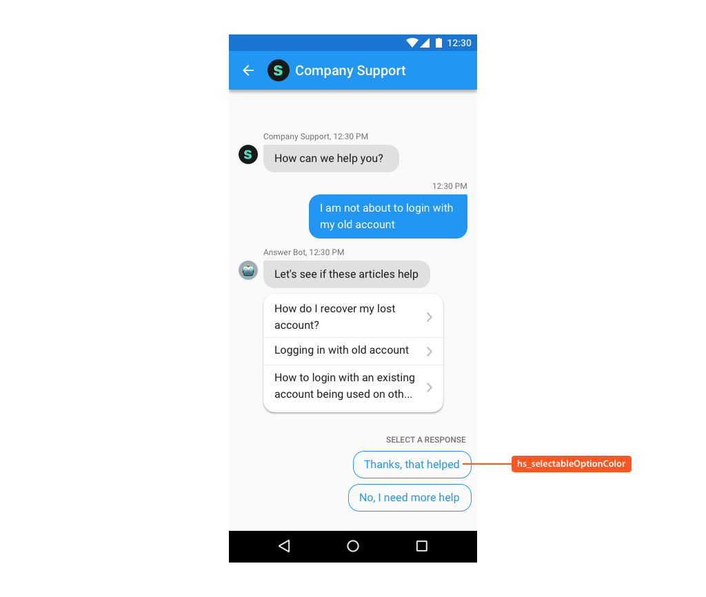 The following illustrates use of these styleable attributes over Helpshift SDK's UI: