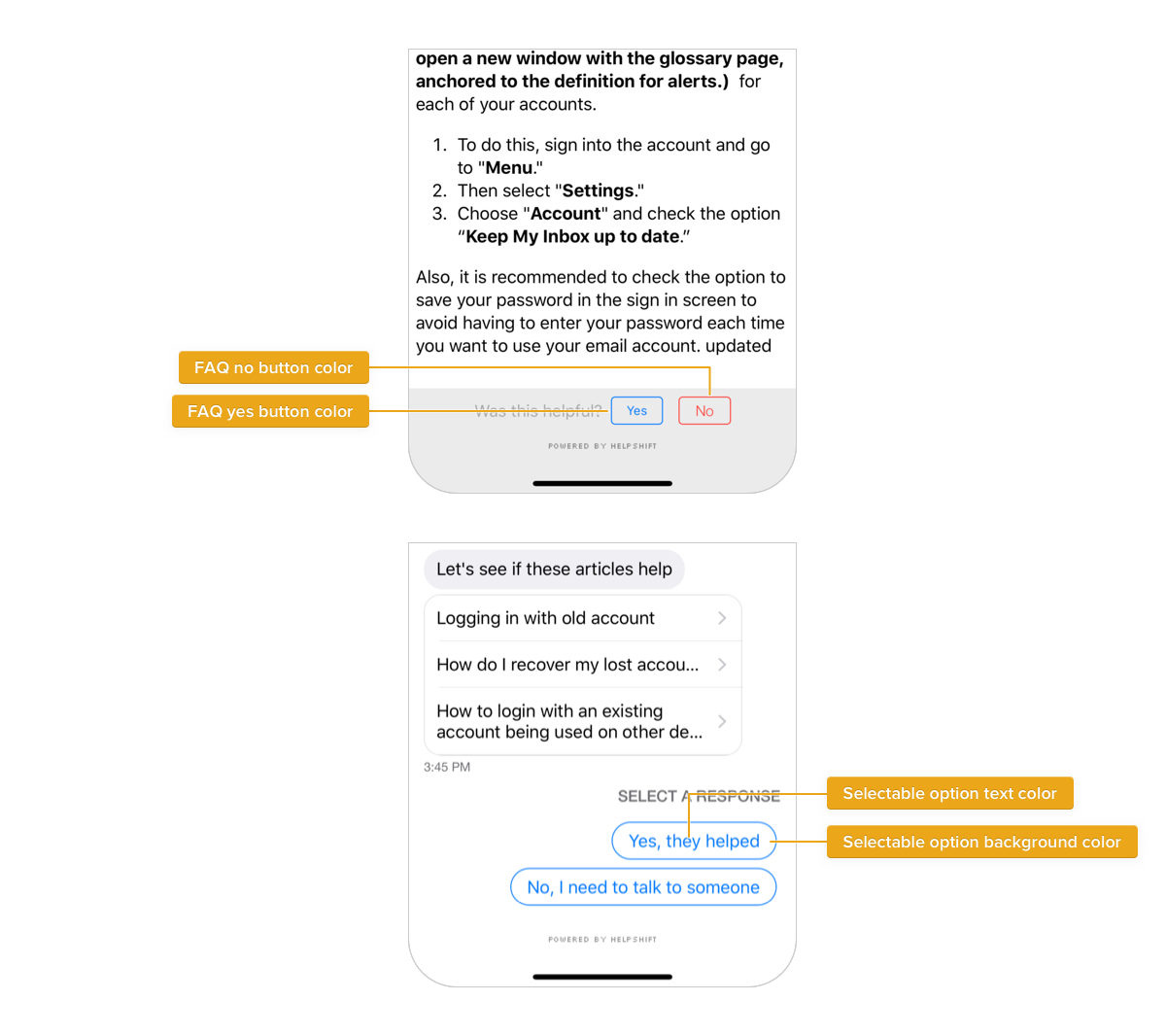 These attributes control the looks of in-app support over many screens.