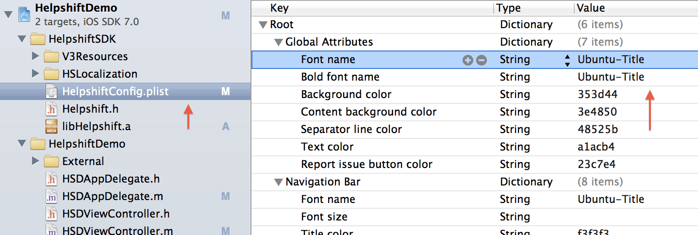 Step 3: Paste the font name into HelpshiftConfig.plist, wherever necesary