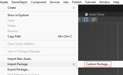 1. In a game, we can import the package by navigating to Assets→ Import Package → Custom Package.