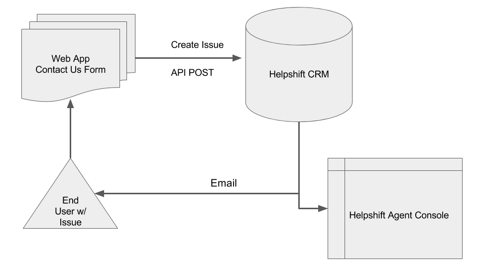 Use the Helpshift API to create issues programmatically from your web application. The create issue API is designed for customers seeking a flexible and customizable approach of filing web platform Issues outside of the Helpshift Agent Console. Using a Contact Us Form, your organization can capture custom metadata while generating an emailed ticket. If your company falls into any of these buckets, then this section may prove useful: