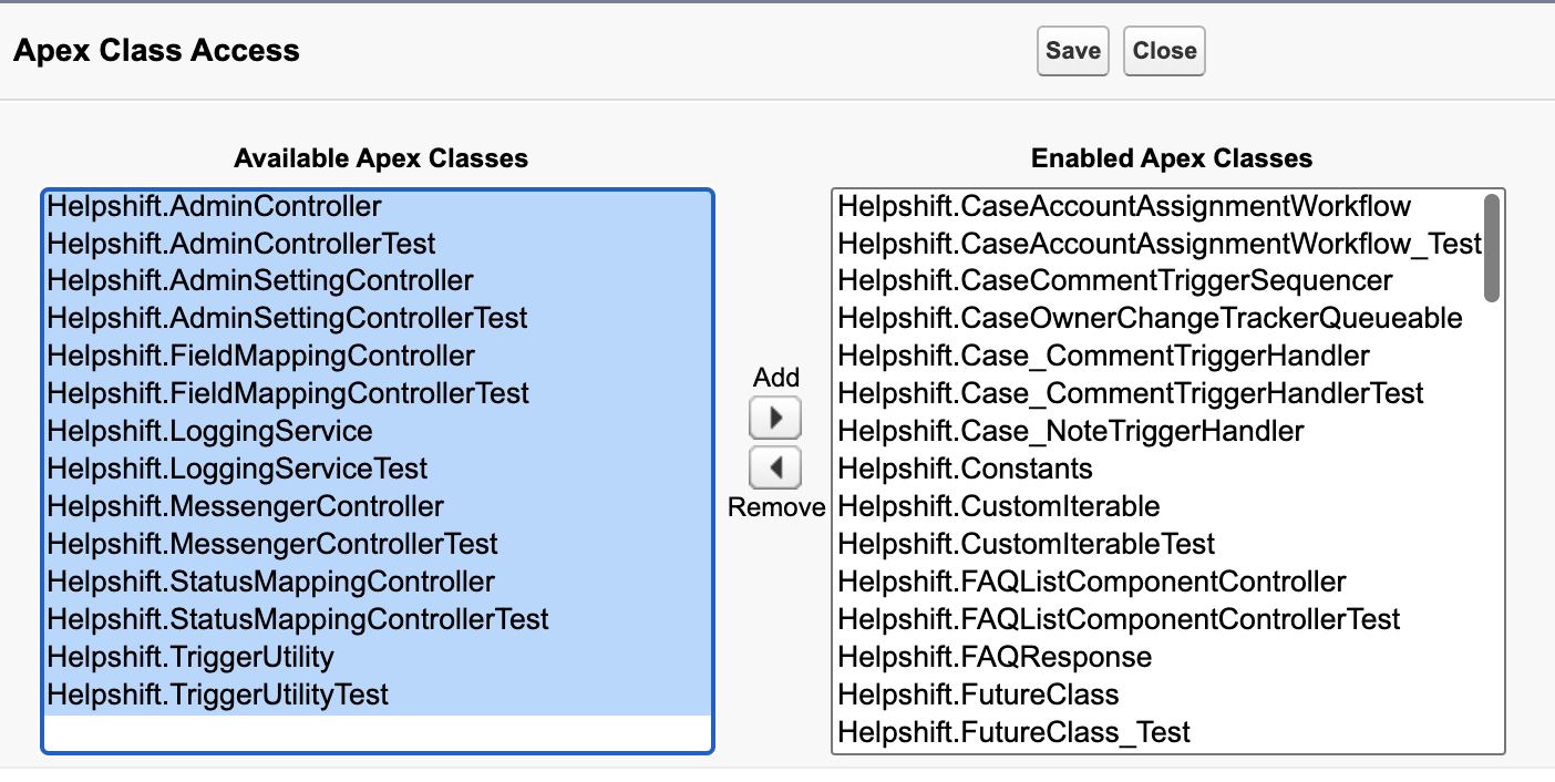 {" "}2. Check if Helpshift_Standard_Object permission set has the new Apex classes permissions. If not, add them directly as shown below.