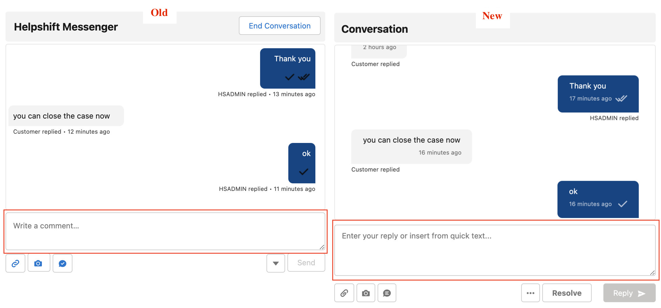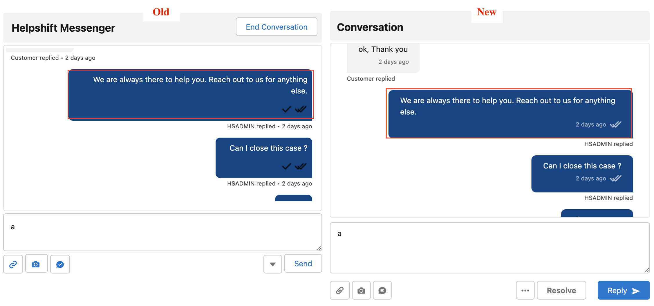 3. The old experience will be available too. If the new messenger or any admin functionality doesn’t work as per your expectations, or you do not like the new experience, you can switch back to the old experience. Please provide feedback to Helpshift Support on reasons to switch back.