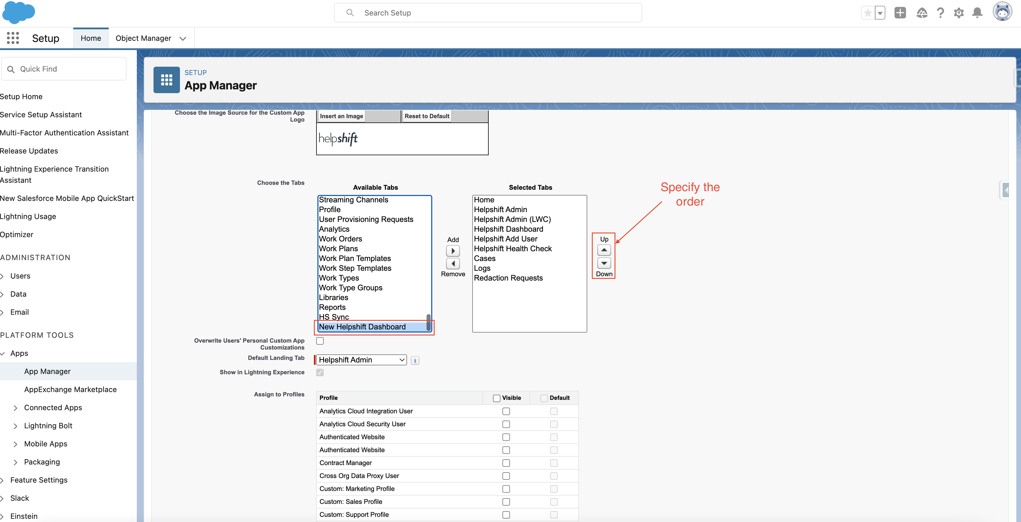 2. Helpshift Admin (LWC) tab is automatically included in the Helpshift app