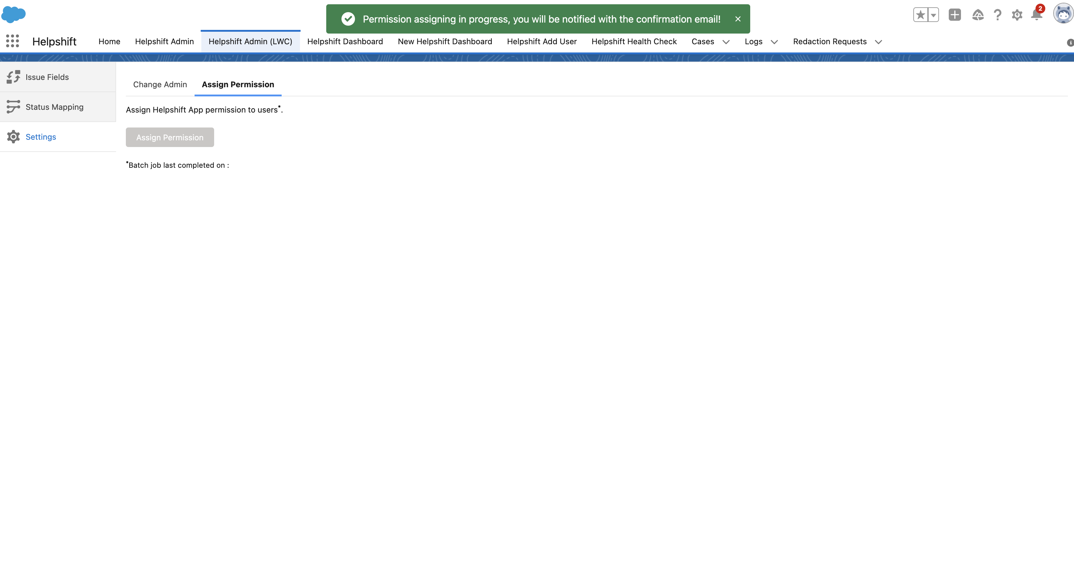 2. On click of the Assign Permission button, you will be notified via email after the job completion